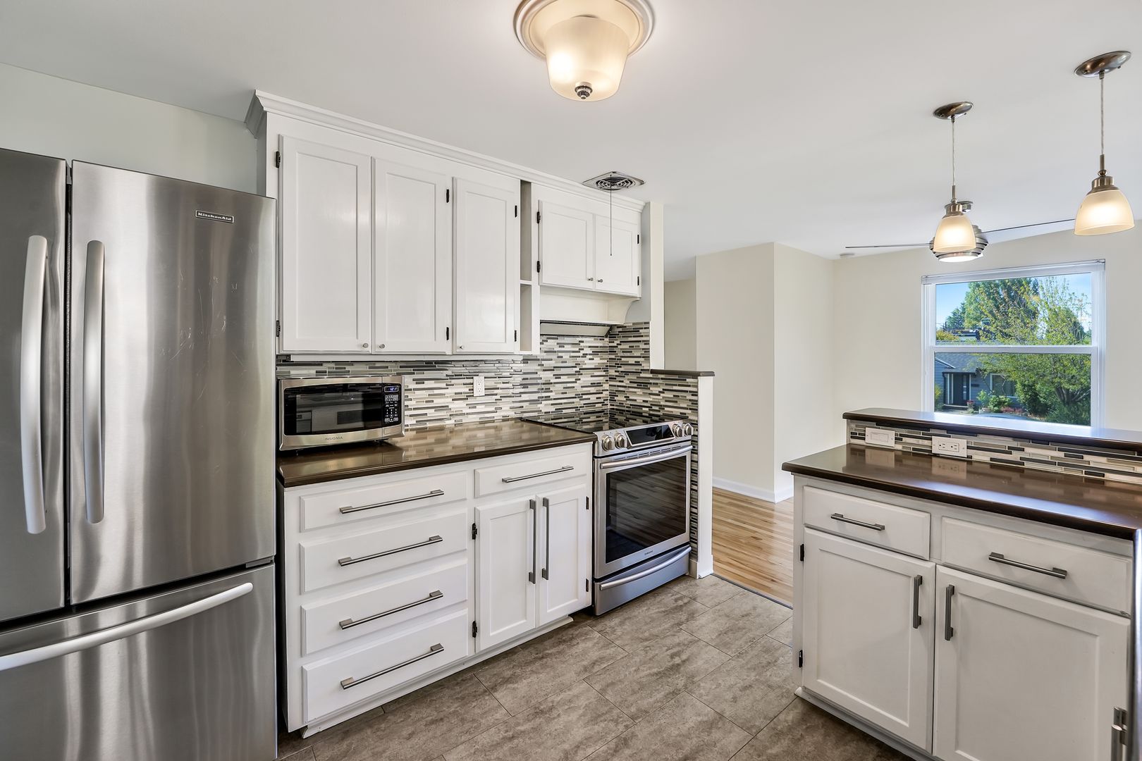 Nestled in the quiet neighborhood of Ballard, this well-maintained 4br/2ba Cape Cod home has been newly updated throughout. 2000 sq. ft. of great space! The heart of the home features a newly remodeled kitchen with modern appliances and finishes, perfect for cooking and entertaining. Bright living room with a wood-burning fireplace, a nice dining area featuring hardwood floors. Amazing MIL w/ 2nd kitchen, 2brs and add'l W/D in the lower level. One car garage and parking pad for RV/boat off alley. A cute, small workspace is included above the garage (no electric) Low-maintenance fenced yard.